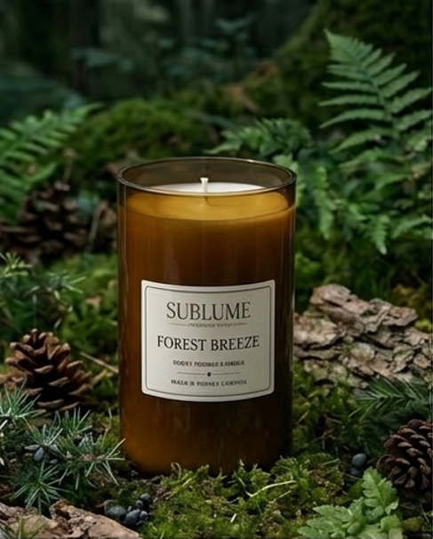 Onze Forest Breeze geurkaars brengt de frisse geur van het bos naar je interieur. Met groene, houtachtige en licht frisse tonen doet de geur denken aan een rustige wandeling door een dennenbos — puur, verfrissend en ontspannend.