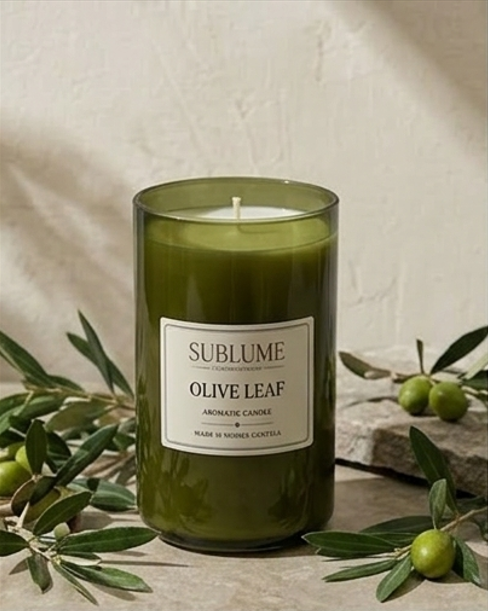 De frisse olijfbladgeur brengt een gevoel van rust en natuur in elke ruimte — perfect om te ontspannen, als origineel cadeau of als stijlvolle decoratie in huis.